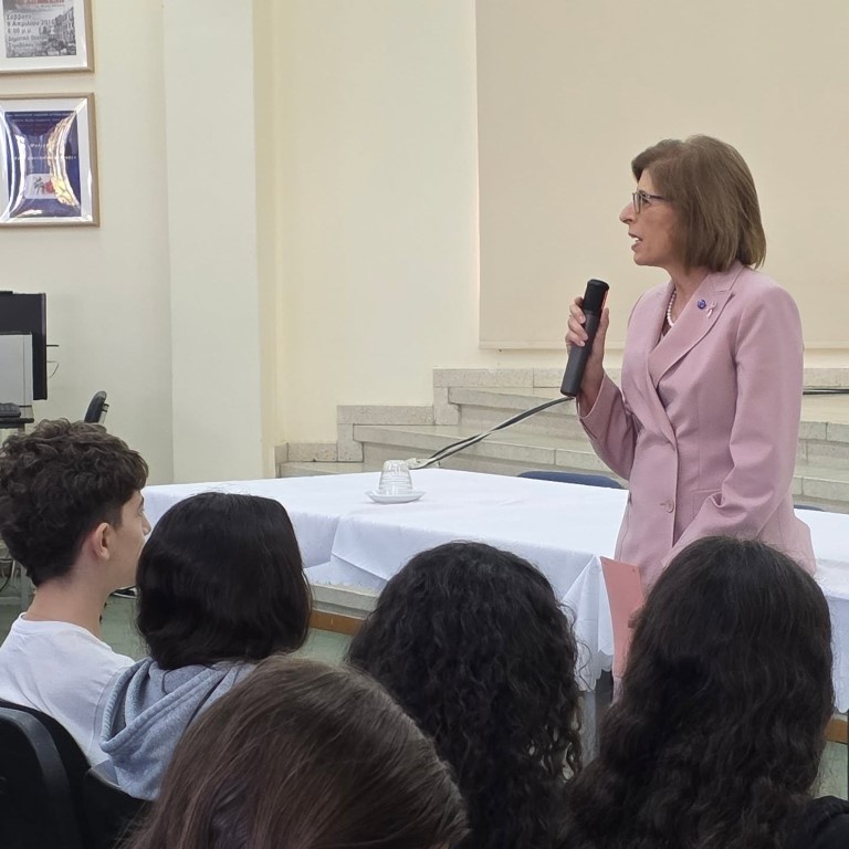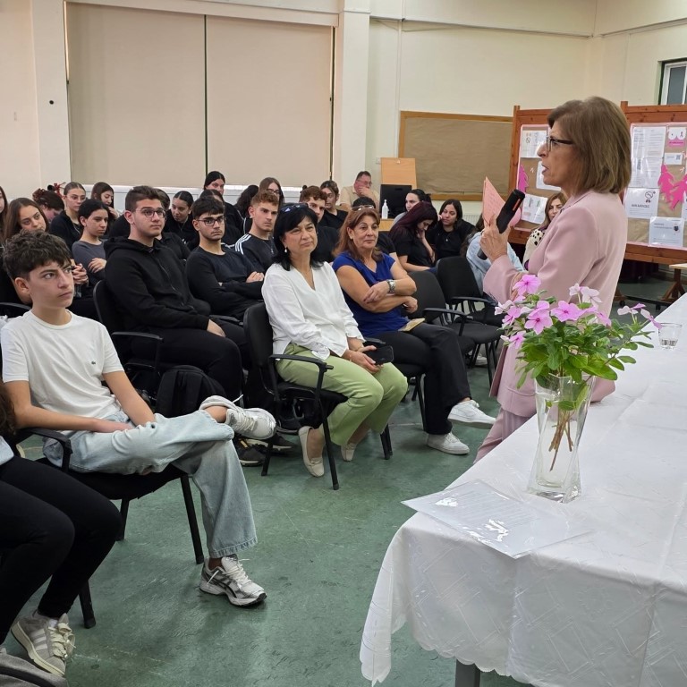 Στο πλαίσιο αυτό, φιλοξενήσαμε σήμερα στο σχολείο μας την κ. Στέλλα Κυριακίδου, τέως Επίτροπο Υγείας και Ασφάλειας Τροφίμων της Ευρωπαϊκής Ένωσης.