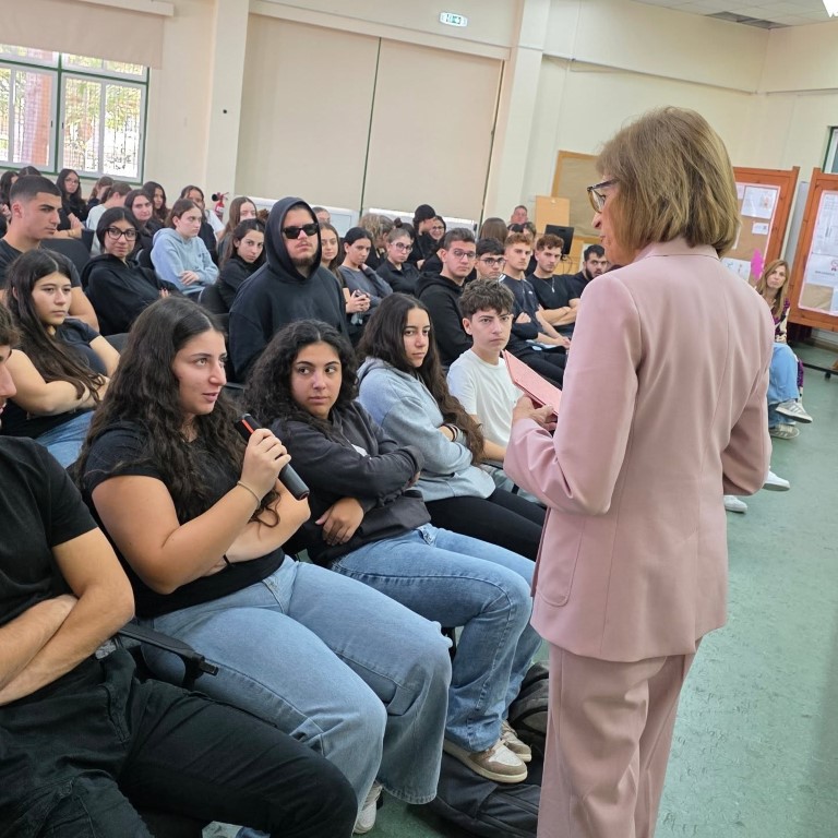 H κ.Κυριακίδου συζήτησε με τα παιδιά μας για τη σημασία της ψυχικής υγείας στη ζωή των ανθρώπων, δίνοντας έμφαση στους νέους και νέες, αλλά και για τις πολιτικές της Ευρωπαϊκής Επιτροπής σχετικά με το θέμα.